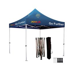 Item# LDP 5342 - This canopy tent is built with a robust 30mm powder-coated steel frame and reinforced ABS nylon joints, providing enhanced stability while resisting rust, corrosion, and peeling. The 400D PU-coated polyester canopy top is both water-resistant and UV-protected, and it supports dye sublimation printing on the peaks and valances for effective branding. Square shaped legs feature the latest thumb-latch locking system, allowing smooth, safe push button height adjustment and secure locking. The tent includes a wheeled carry bag and stake kit for convenient transport, storage, and stable setup. Ideal for promotional events, and outdoor activities, this tent ensures your brand stands out. 10' W x 10' H. Get a free quote now! Get a free quote now.